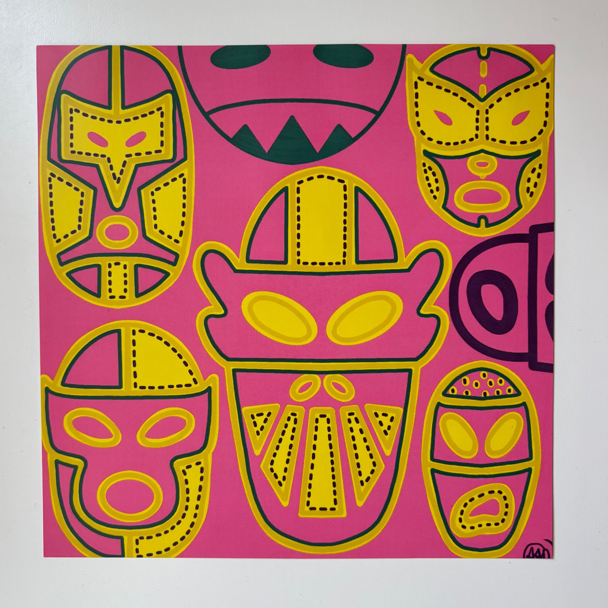 8x8" print of an acrylic painting title Unmasked, which is part of my 'Taking Up Space' series from 2023. The print shows the texture of the paint and the vibrancy of the colors used.